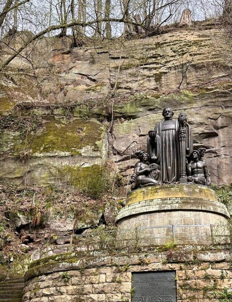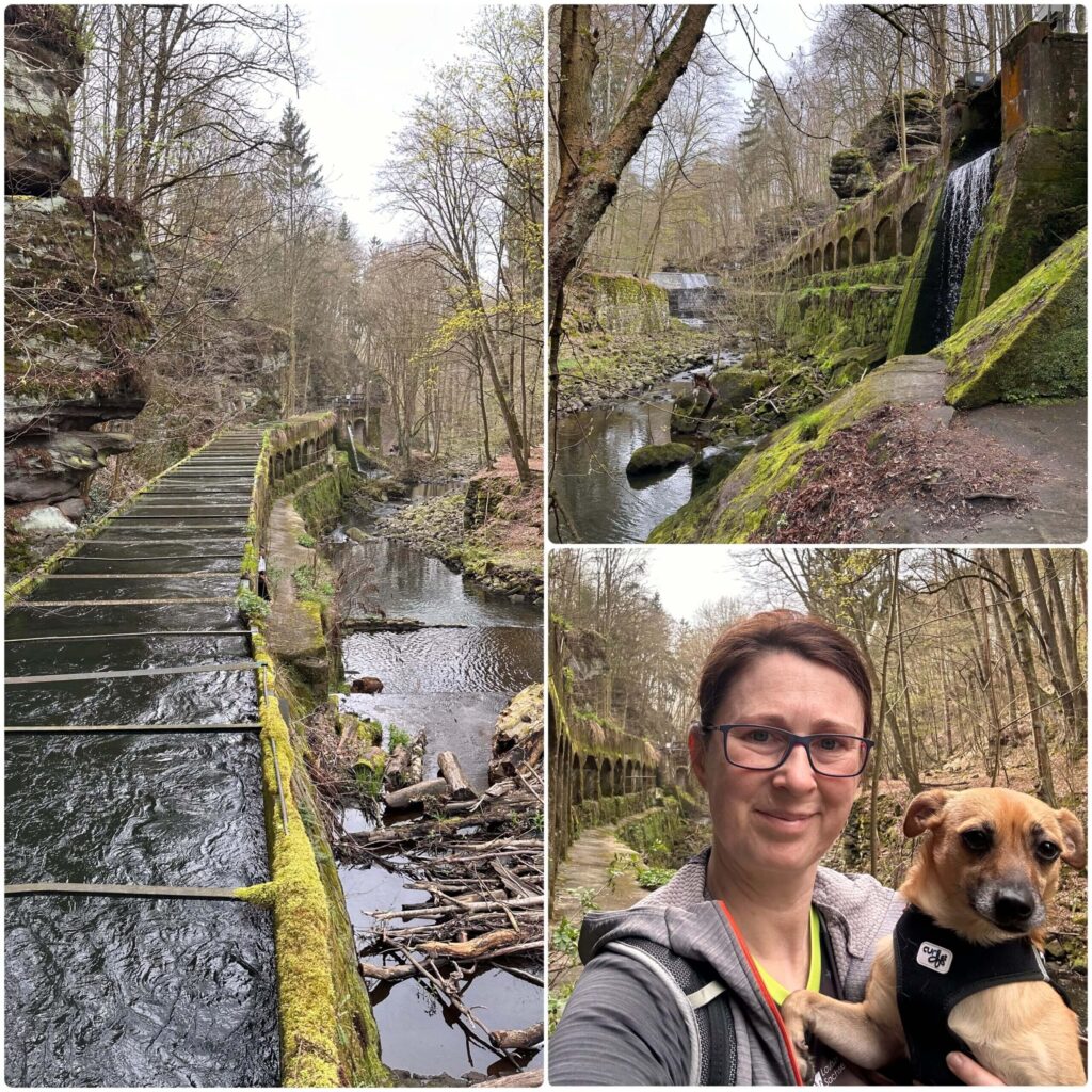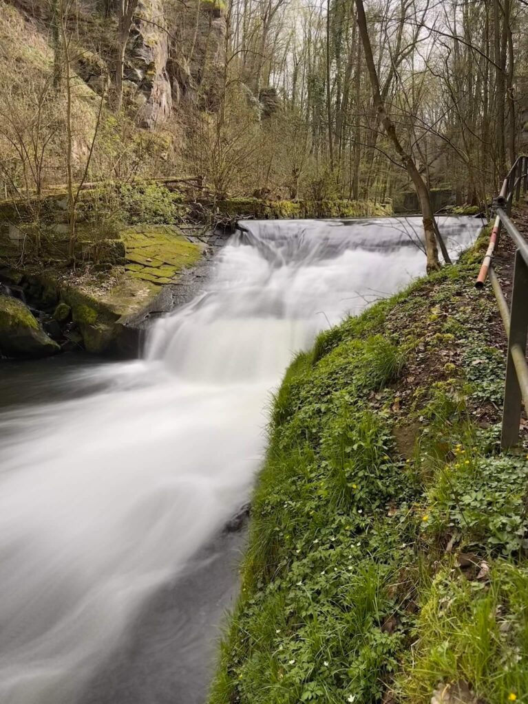 Wenn man zeitig genug vor Ort ist, findet man leicht einen Parkplatz auf einem der Wanderparkplätze im kleinen Örtchen Liebethal. Den Wanderweg kann man nicht verfehlen und so geht es die ersten Kilometer immer entlang der Wesenitz. Verschiedene Highlights lassen es nicht langweilig werden. So treffen wir z.B. auf das 1933 errichtete Richard-Wagner-Denkmal. Mehrmal verweilte Wagner im Liebethaler Grund, er komponierte hier Teile der Oper Lohengrin. Unweit des Denkmals befindet sich die Lochmühle, eine von mehreren Mühlen, die es im Tal schon seit dem 14. Jh. gibt, um die Wasserkraft der Wesenitz gewinnbringend zu nutzen. Weitere Mühlen sind die Daubemühle, die Liebethaler Mühle und die Grundmühle Hinterjessen. Schön anzusehen ist auch der kleine Wasserfall an der Lochmühle.